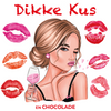 Chocolade reep tablet in kaart doosje met tekst 'Dikke Kus'.