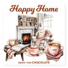 Chocolade reep tablet in kaart doosje met tekst 'Happy Home'.