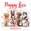 Chocolade reep tablet in kaart doosje met tekst 'Puppy Love'.