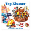 Chocolade reep tablet in kaart doosje met tekst 'Top Klusser'.