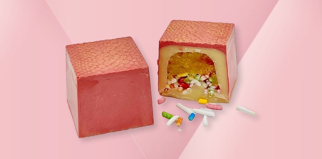 Party Eyeshadow is Birthday Cake en romige Witte Chocolade Ganache met kleurrijke Sprinkels verpakt in Belgische Chocolade.