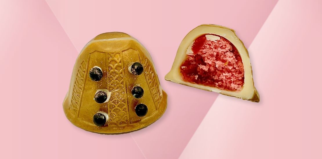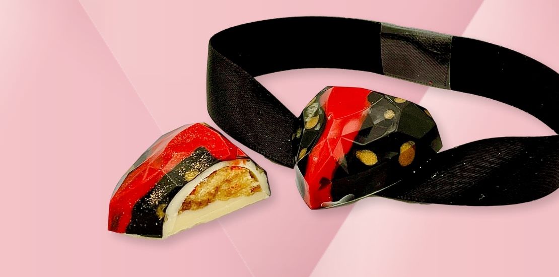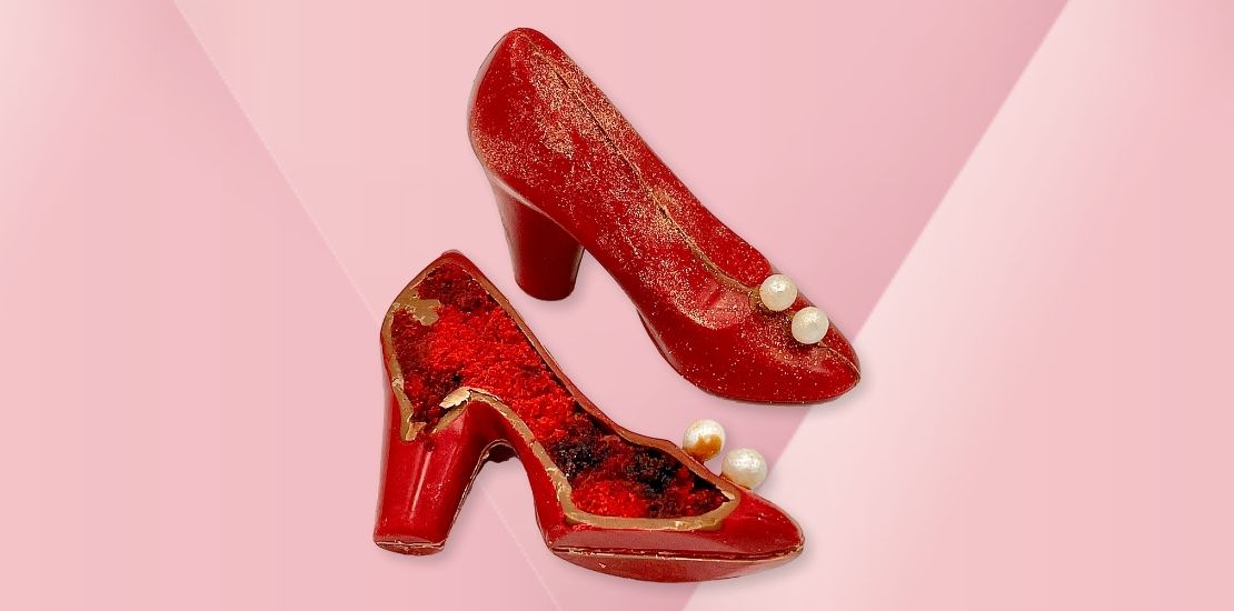 Burgundy Velvet Heels is Red Velvet Cake met Rode Wijn Ganache verpakt in Belgische chocolade.